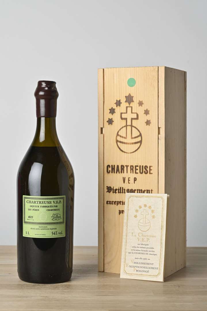 1 B CHARTREUSE VERTE V.E.P. 100 cl 54% (Caisse Bois d'origine) (4,5 cm| mi
