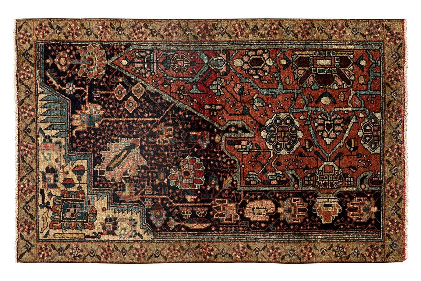Velours de laine sur fondations en coton. À décor floral géométrique.