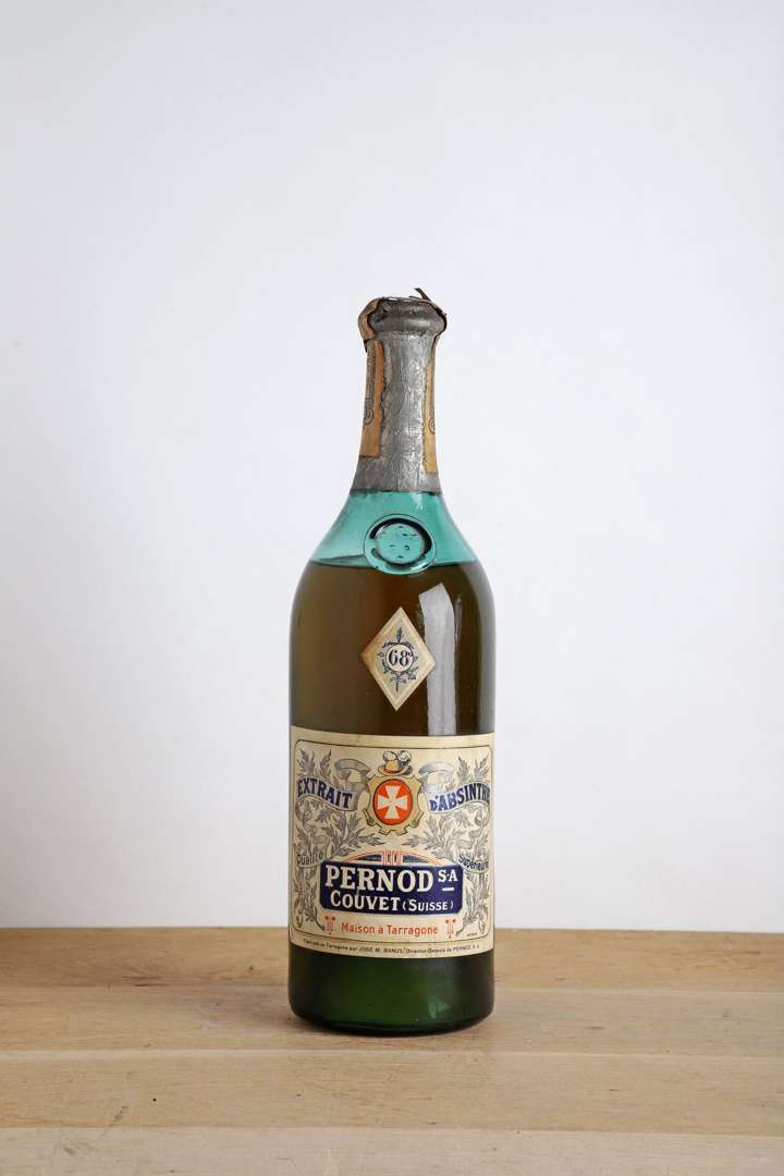 1 B EXTRAIT D'ABSINTHE TARRAGONE 100 cl 68% (3 cm| coiffe sale| timbre fiscal espagnol) - NM - Pernod S.A