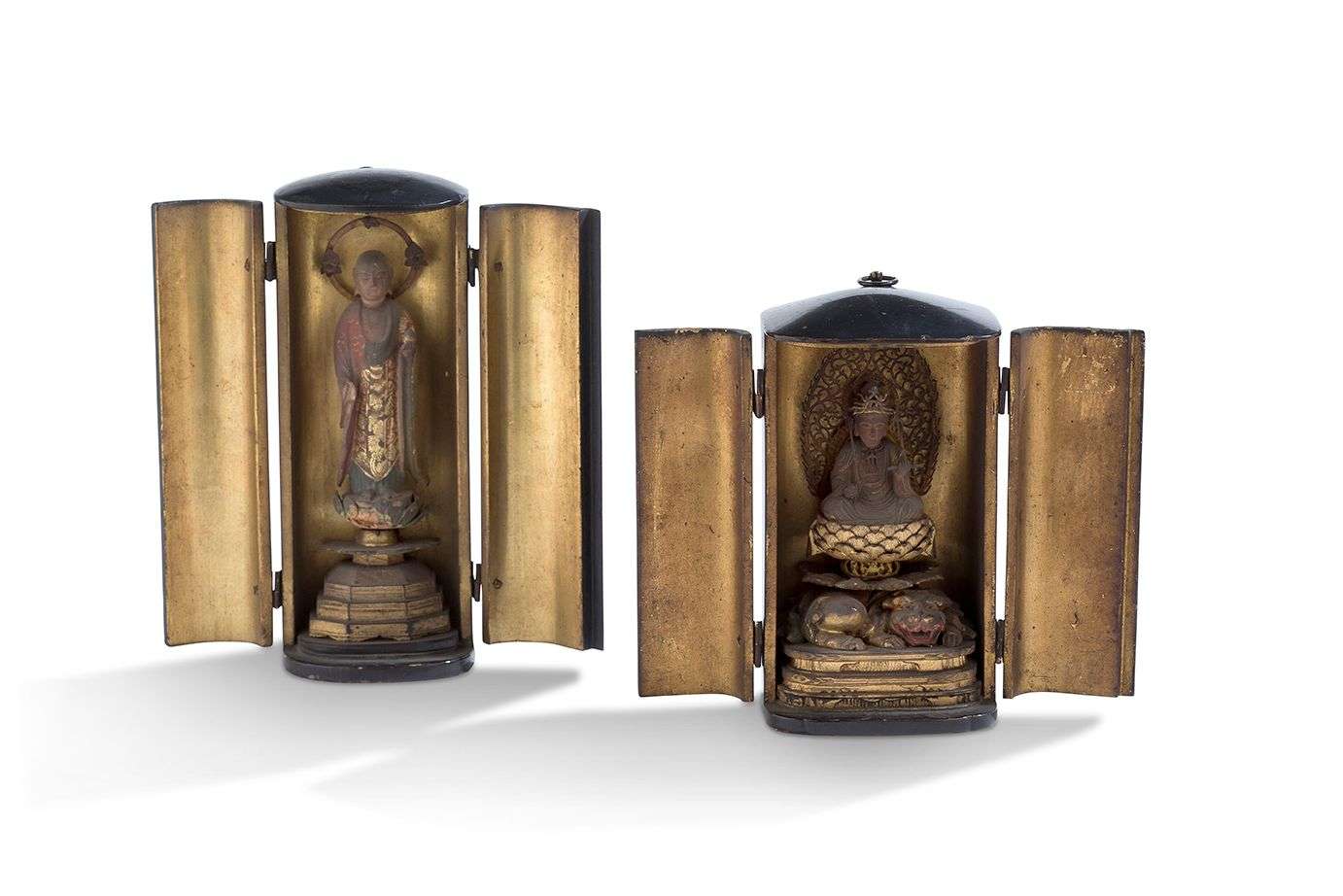 Ensemble de deux petits autels portatifs (zushi), l'un abritant une statuette de Jizo
