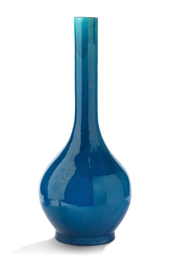 Paire d'importants vases bouteilles en porcelaine à couverte monochrome bleu turquoise des fours d'Awaji.