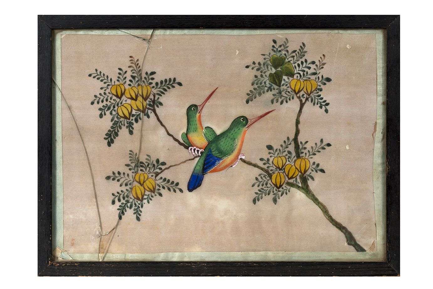 Ensemble de huit gouaches sur papier de riz figurant des oiseaux exotiques parmi les fleurs. Dans des encadrements postérieurs.