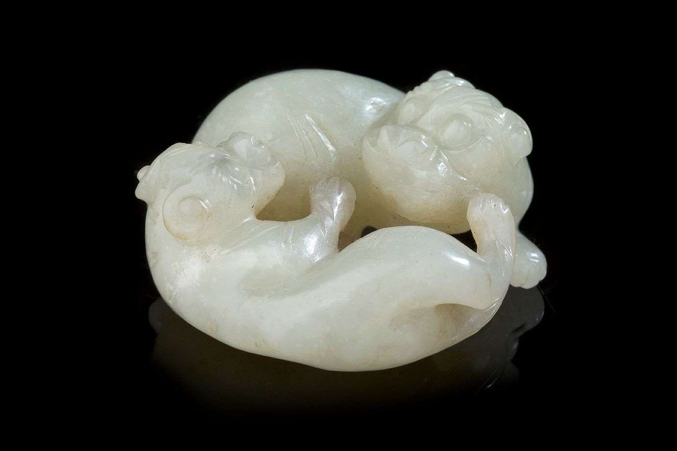 Petit jade céladon sculpté figurant deux félins couchés.