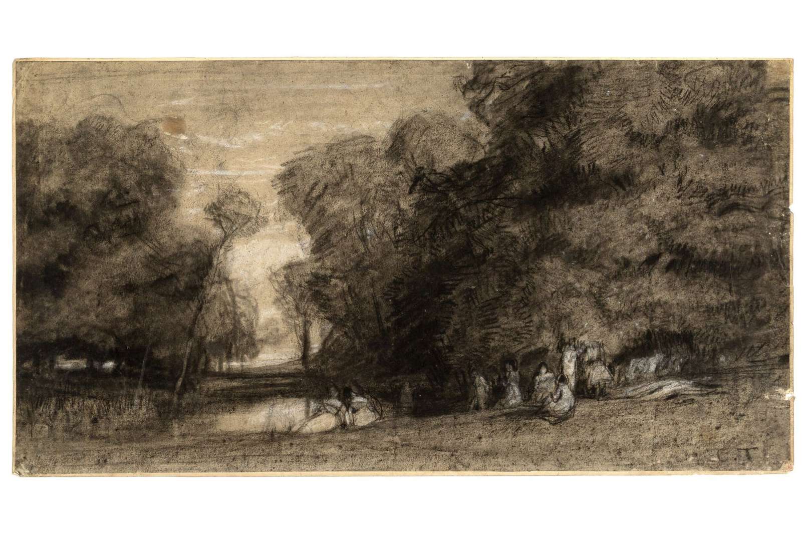 Black chalk, stump and white chalk on toned paper, signed with the artist's initials lower right
