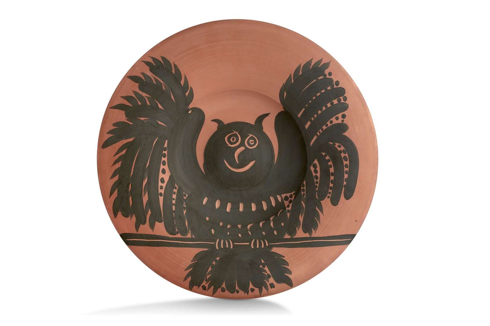 Plat rond tourné Hibou aux ailes déployées, 1957 [A.R. 397]