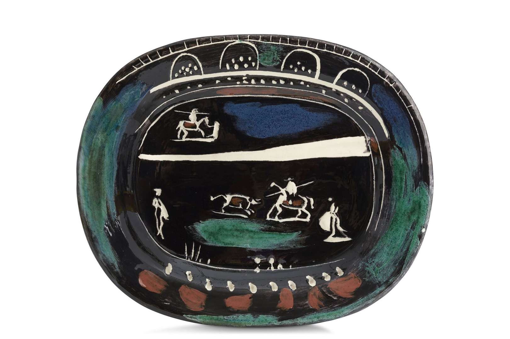 Plat rectangulaire Corrida verte, 1949 [A.R. 81]