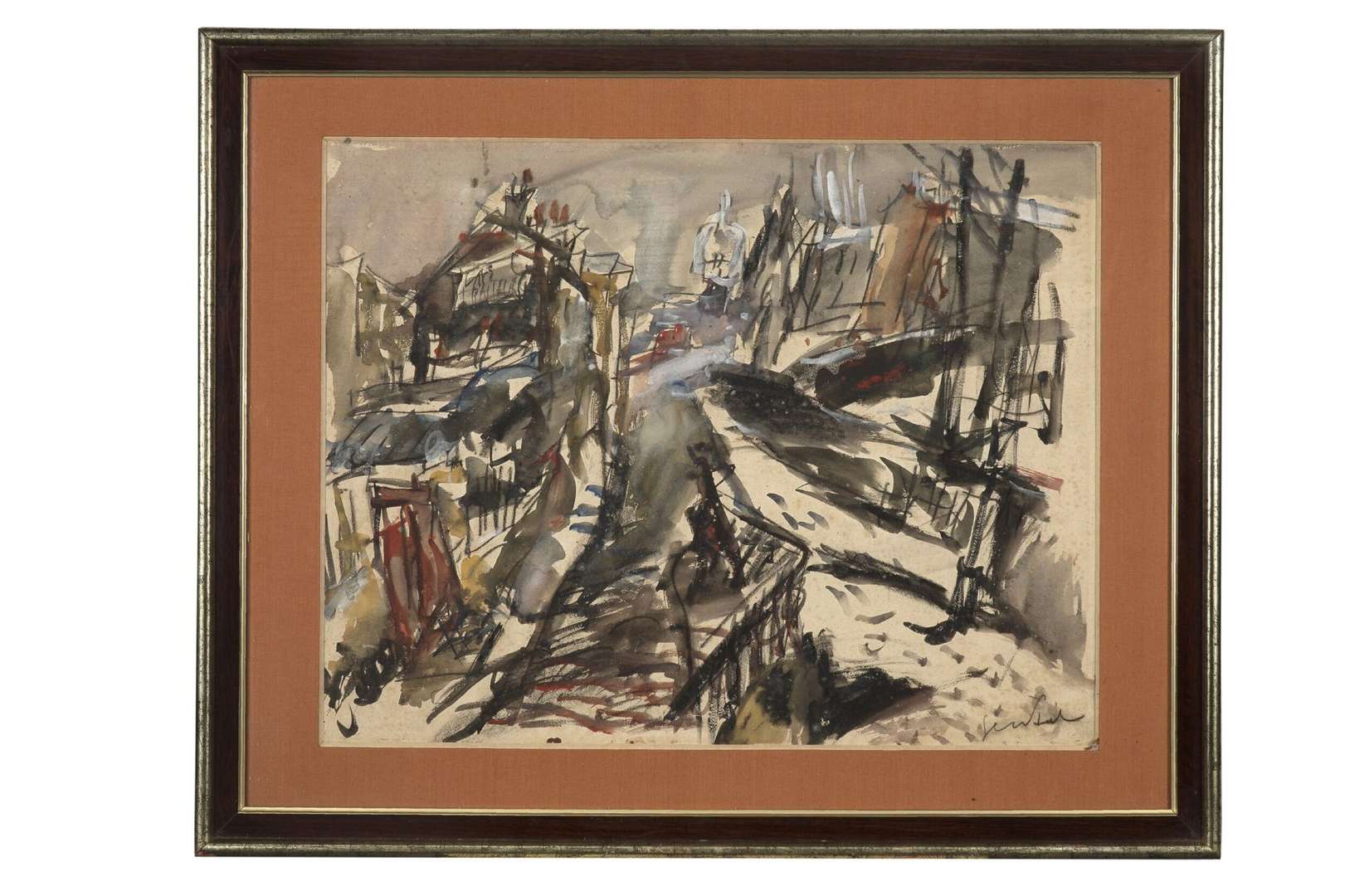 Gouache and black chalk on paper, signed lower right