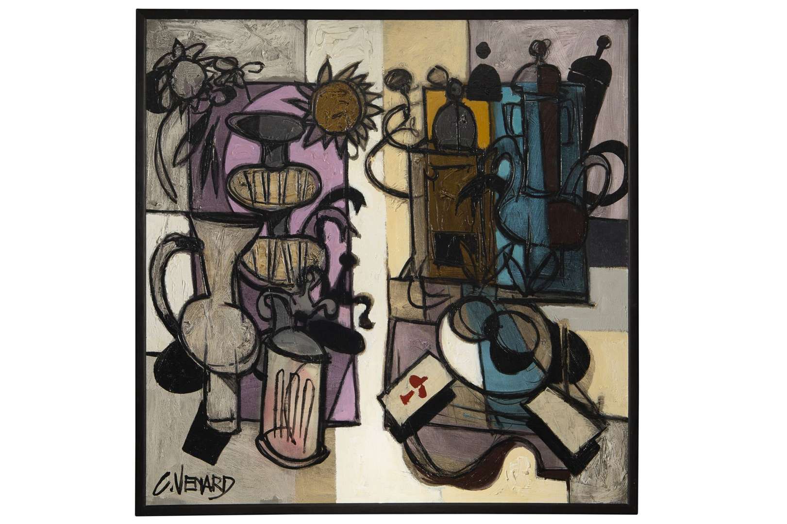 Nature morte au tournesol, verseuses et carte à jouer, 1991
