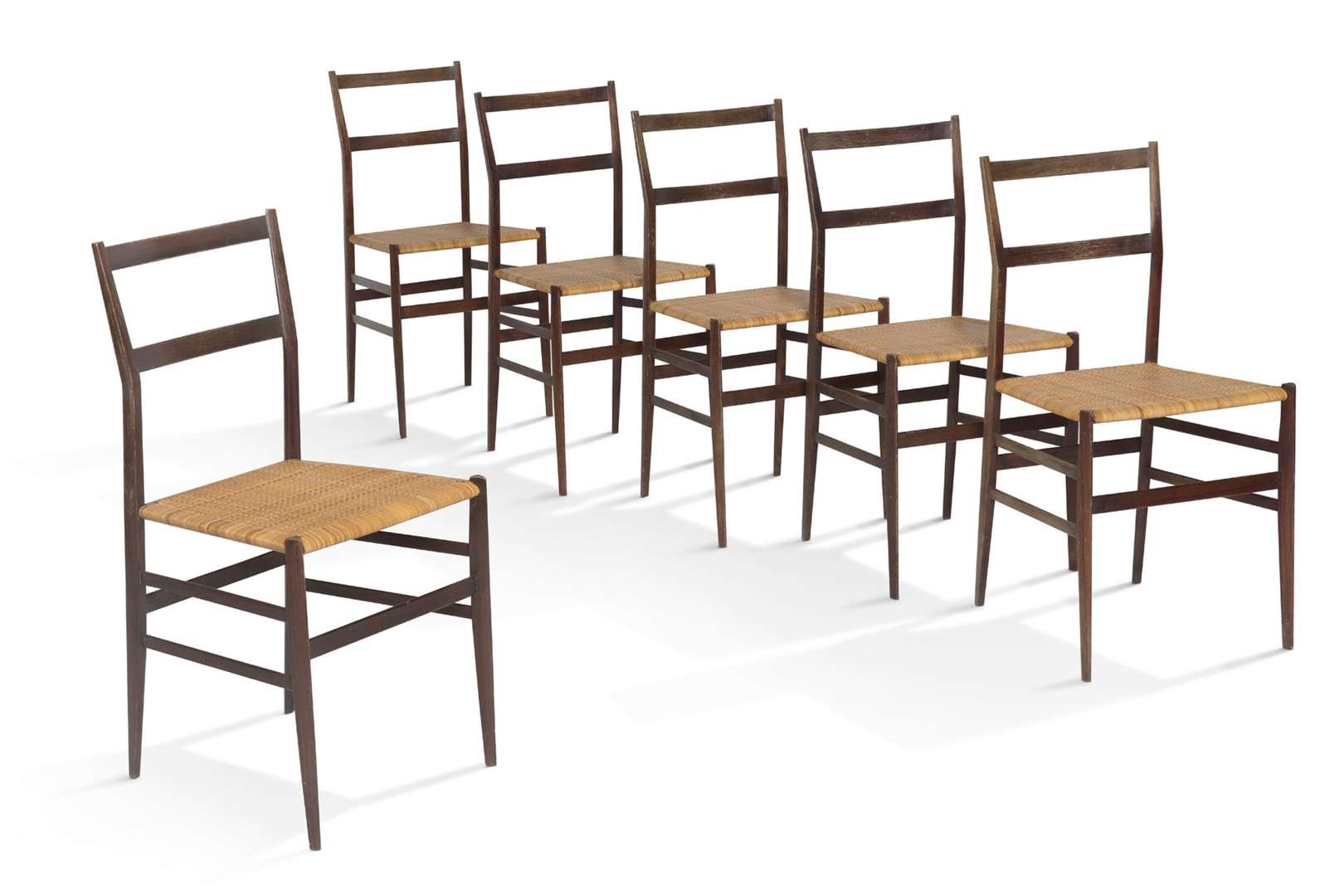 Suite de six chaises, modèle ‘699' dit ‘Superleggera' créé en 1957, réalisé circa 1960.