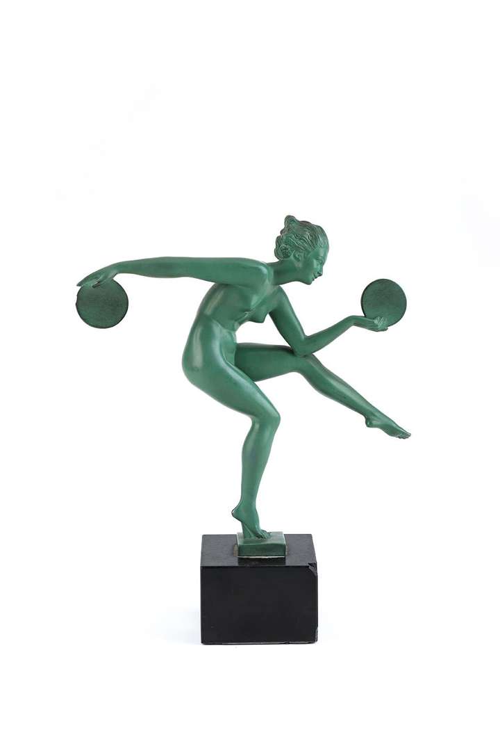 Signature incisée 'Derenne'. Sur une base cubique en marbre noir.