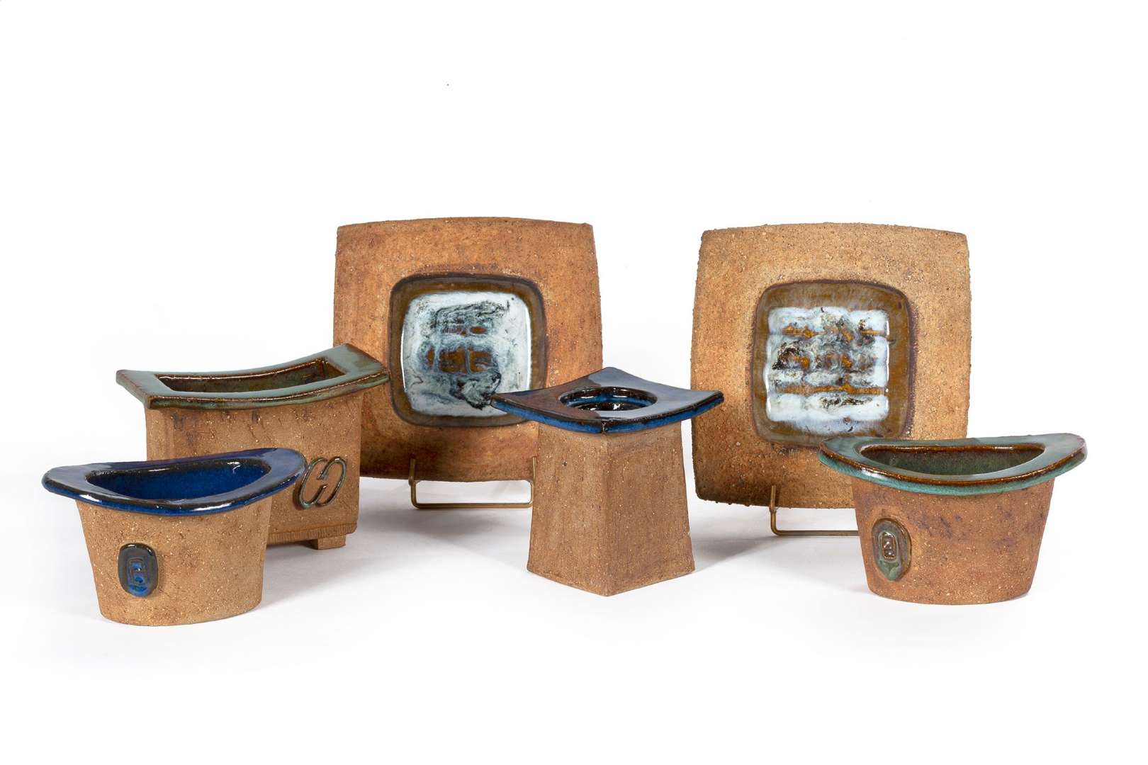 Suite de cinq vide-poches et un bougeoir brutalistes, circa 1970