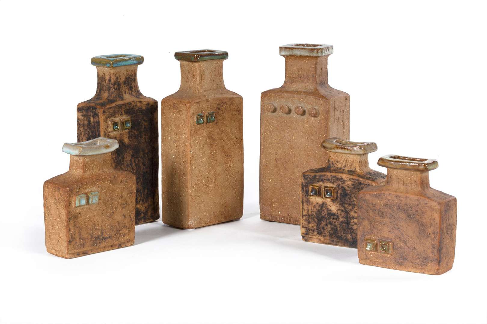 Suite de six vases brutalistes, circa 1970