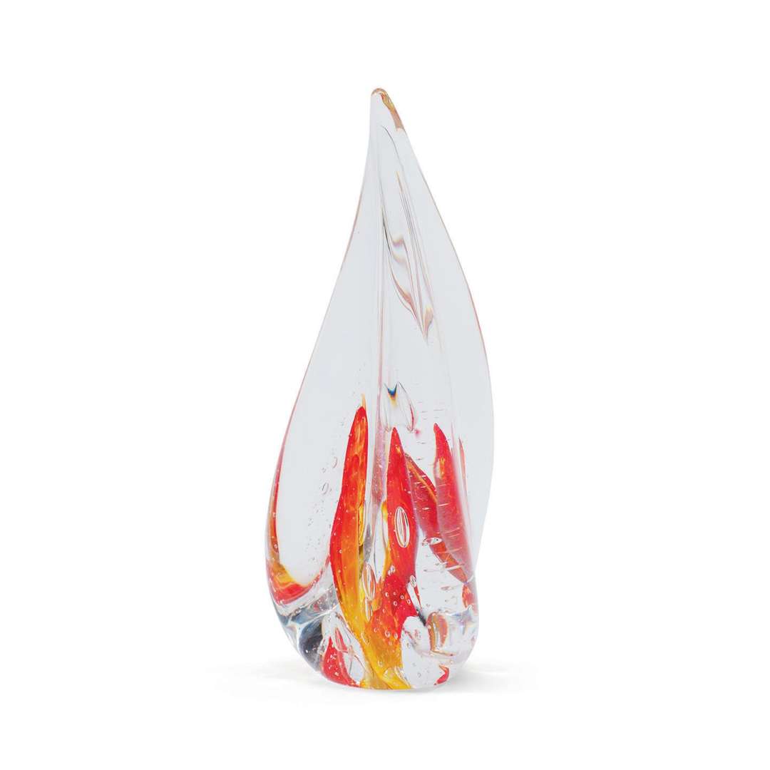 A flame in multi-layered glass with yellow and red inclusions. Signed and numbered.