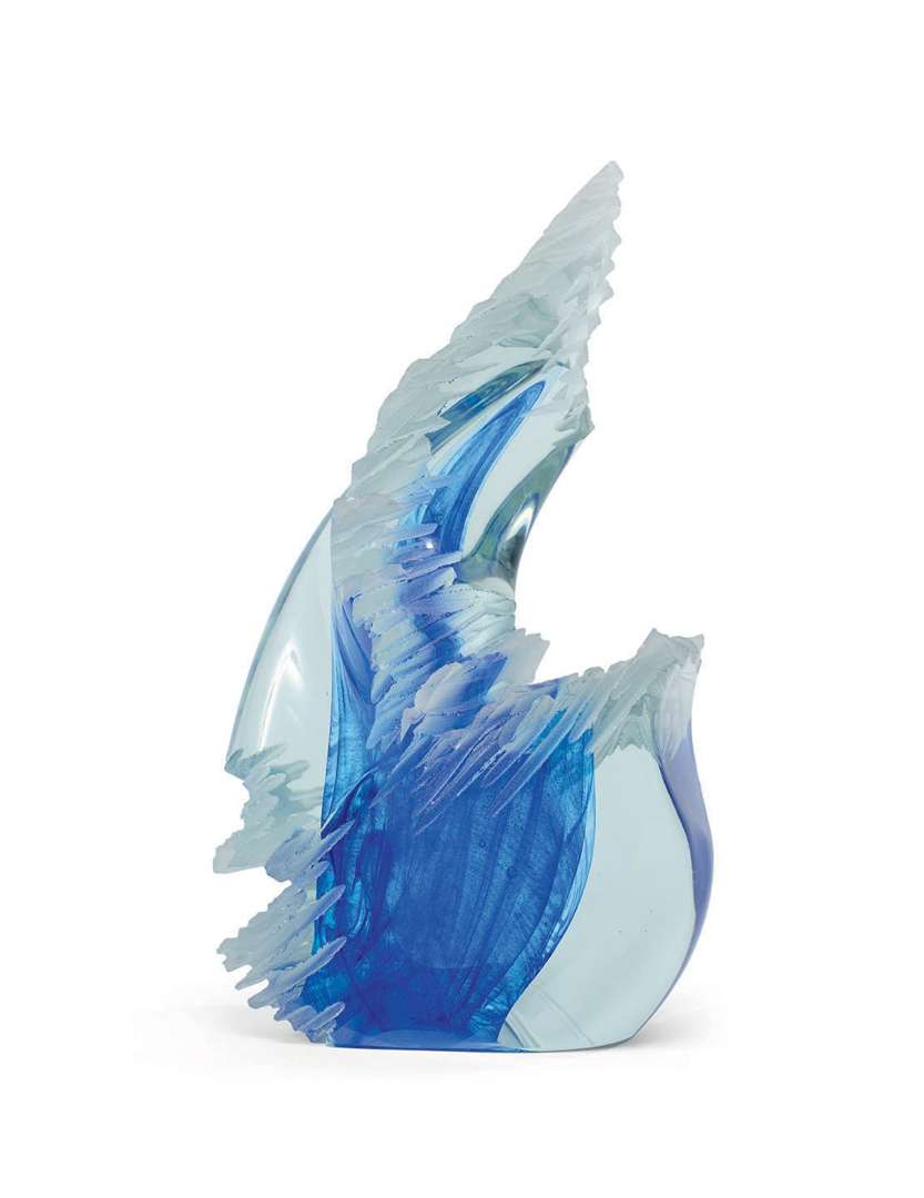A sculpture in blue translucent multi-layered blown and cut glass. Signed and numbered.