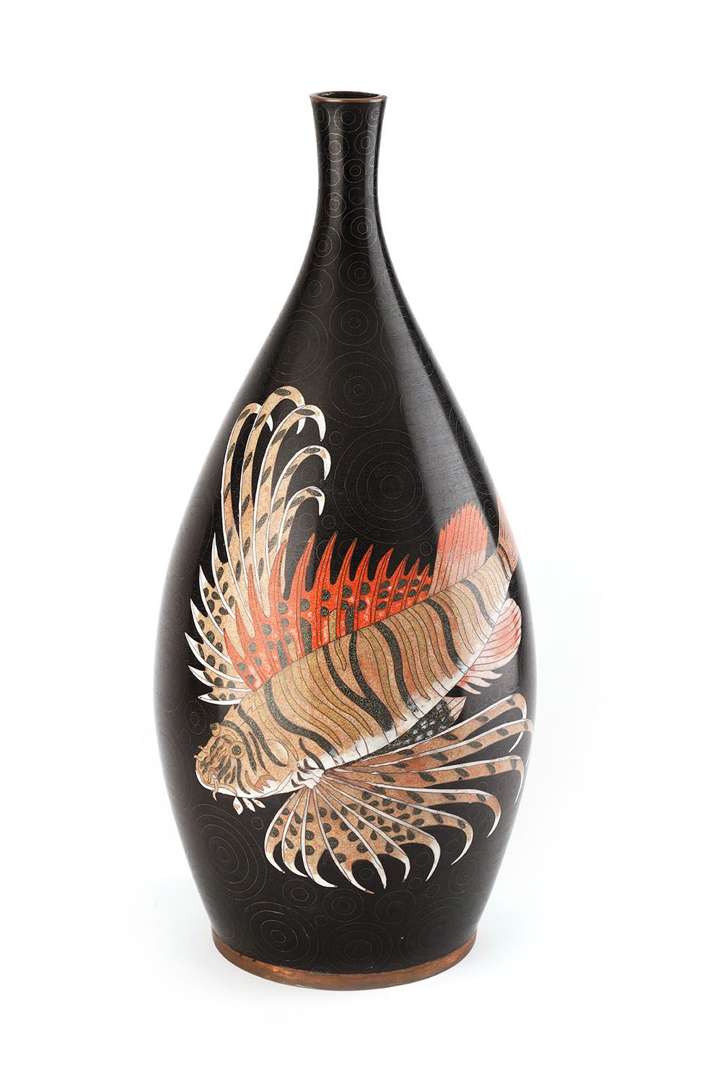 An enamelled copper 'Tropical Fish' vase.
