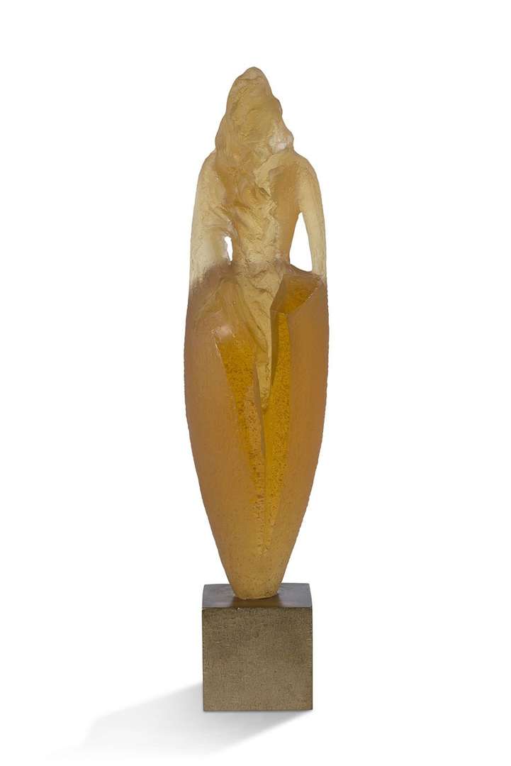 A ‘Woman Amphora’ sculpture in glass paste. Stamped and numbered. On a bronze base. In its original box.