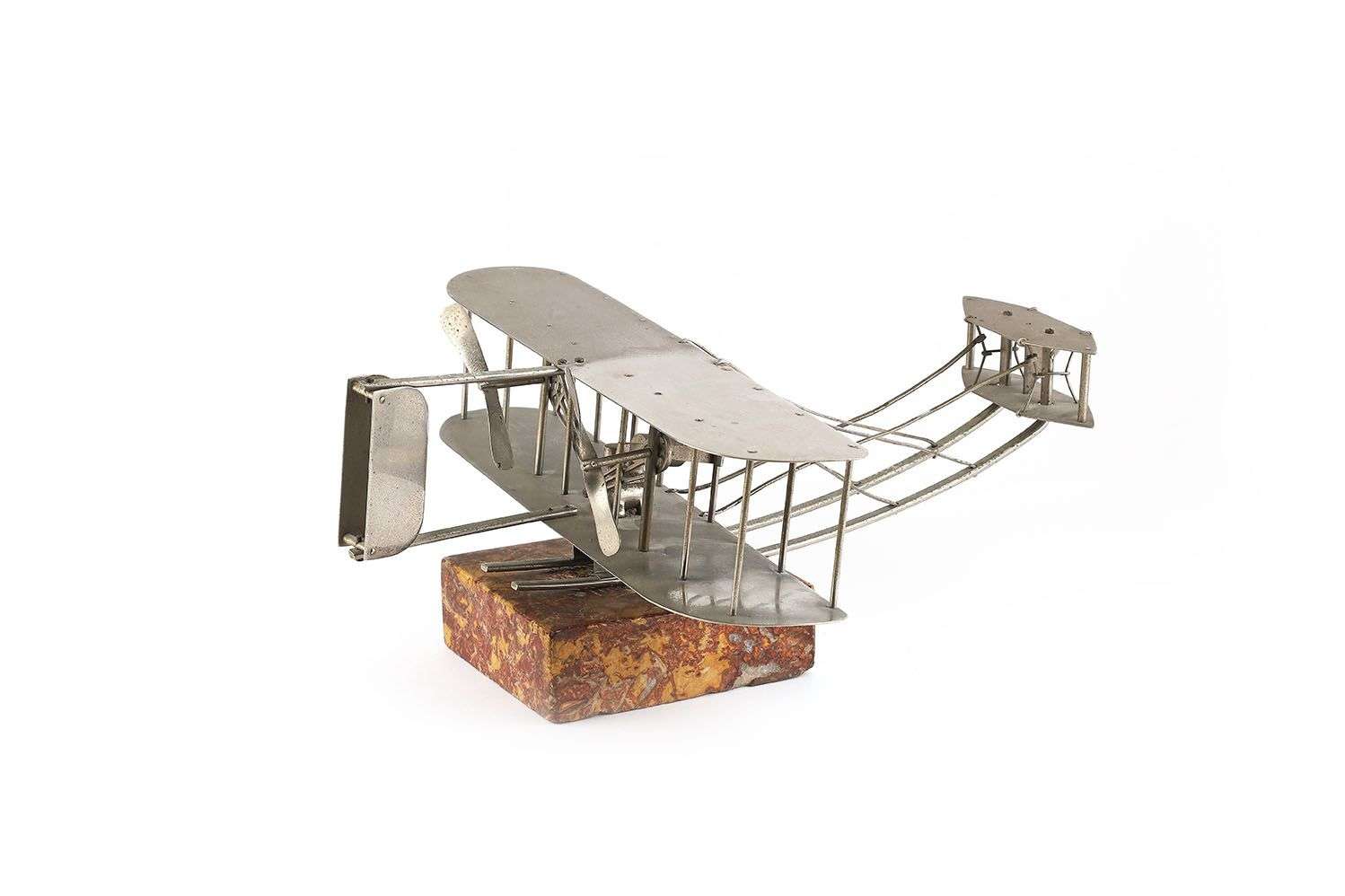 A metal plane. With a marble base.