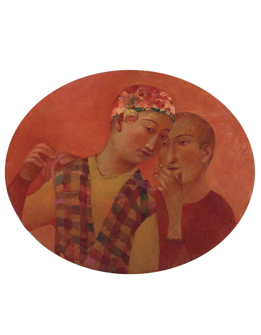 Oil on canvas signed, dated lower right and annotated "deux jeunes hommes" on the reverse