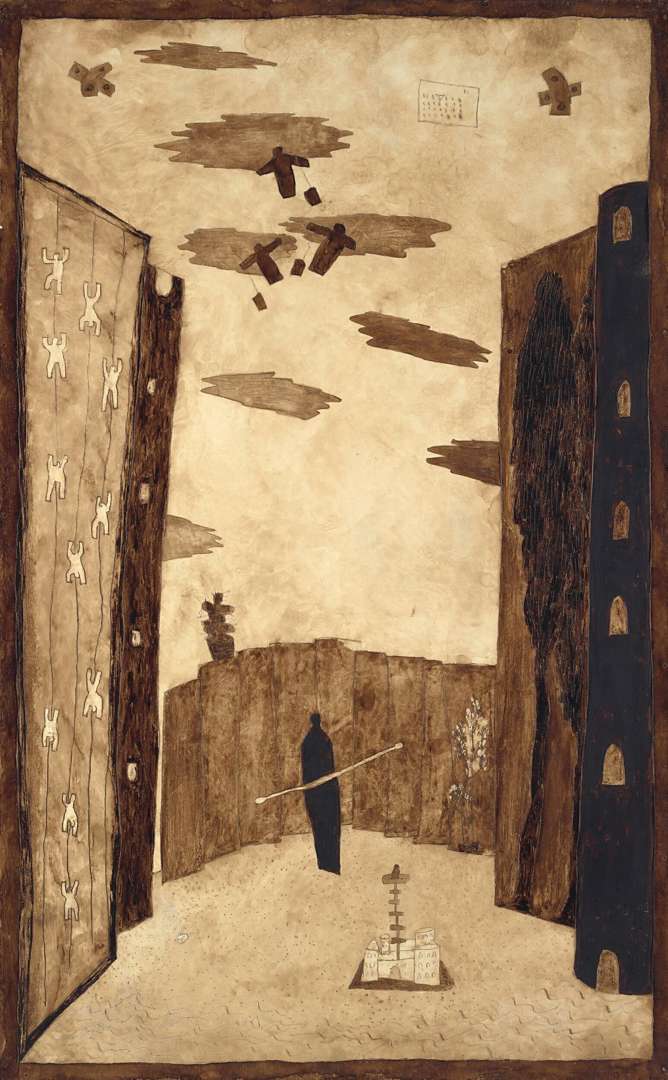 Mixed media on panel signed, dated and numbered 49 on the reverse