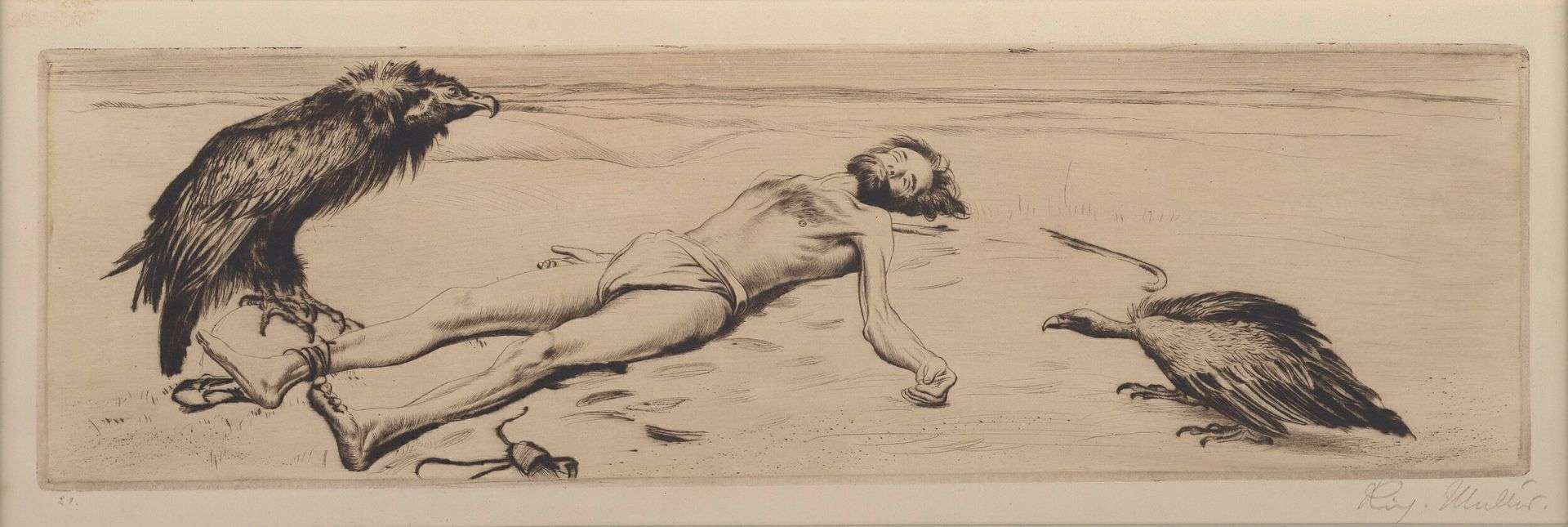 Eau-forte signée au crayon en bas à droite, numérotée 21 en bas à gauche