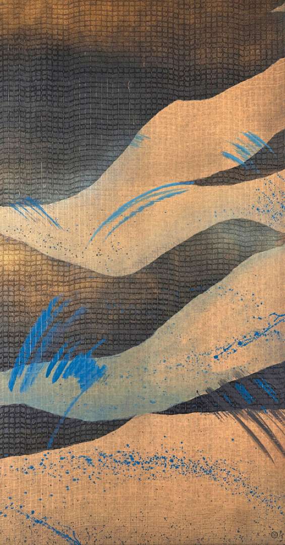 Peinture et collage sur panneau signé des initiales JYO(?) et daté en bas à droite