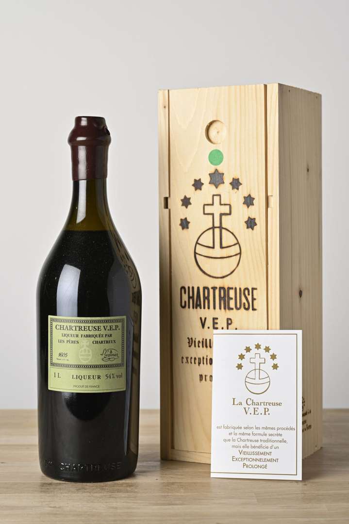 1 B CHARTREUSE VERTE V.E.P. 100 cl 54% (Caisse Bois d'origine) (mise 2020)