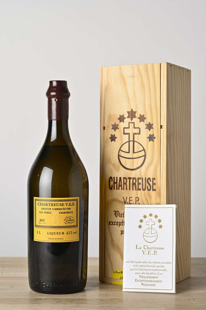 1 B CHARTREUSE JAUNE V.E.P. 100 cl 42% (Caisse Bois d'origine) (mise 2021)