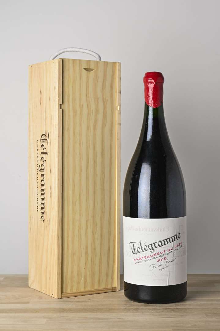 1 JERO CHÂTEAUNEUF DU PAPE TÉLEGRAMME Rouge (Caisse Bois d'origine) - 2018 - Vignobles Brunier