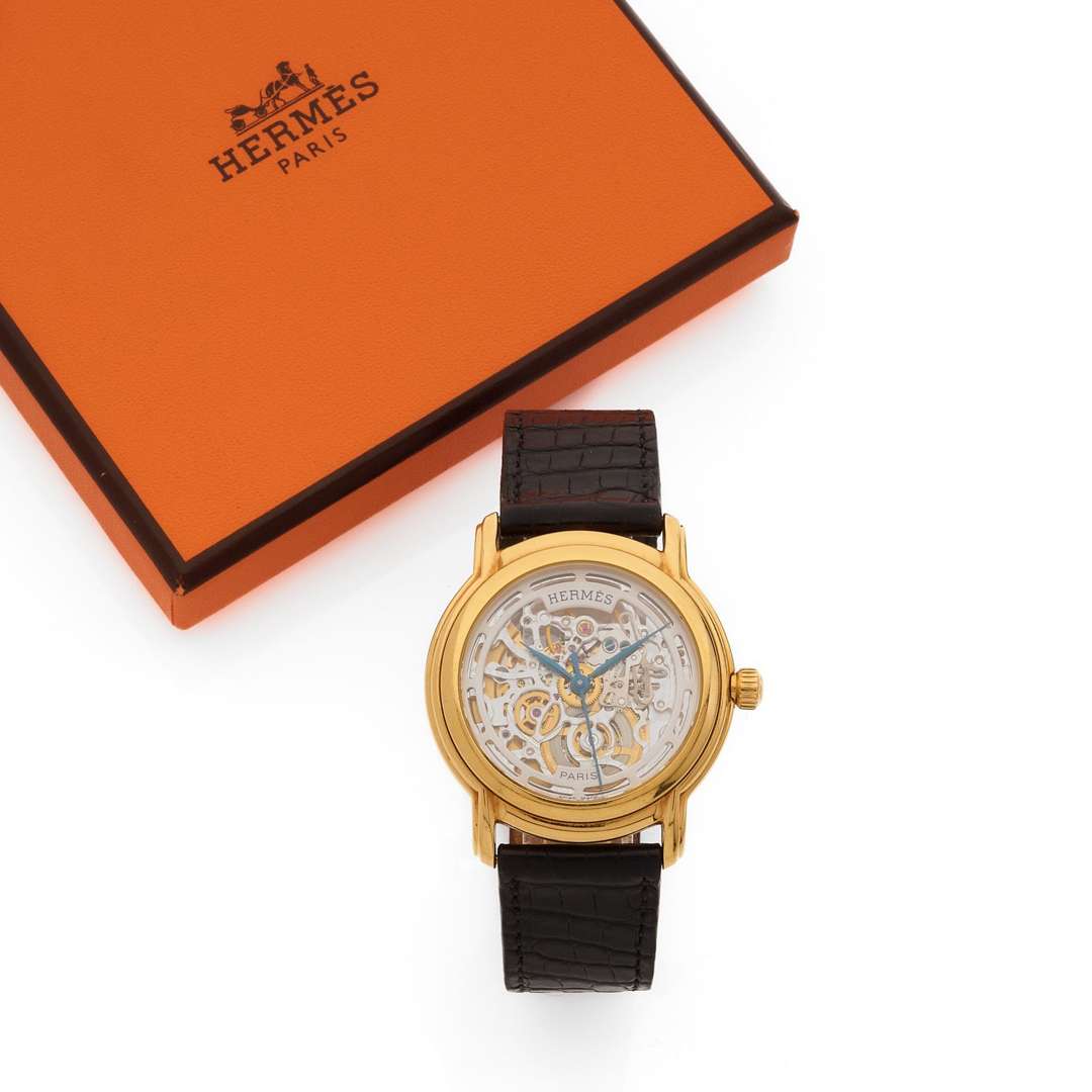 Cadran : squelette avec mécanisme apparent, trotteuse centrale, signé « Hermès Paris »