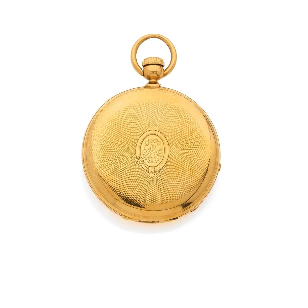 Boîtier : rond sur charnière, le boîtier entièrement guilloché, cuvette en or signée et numérotée « No. 15397 Wynalezli I Zroblili Patek Philippe & Co W Genewie »