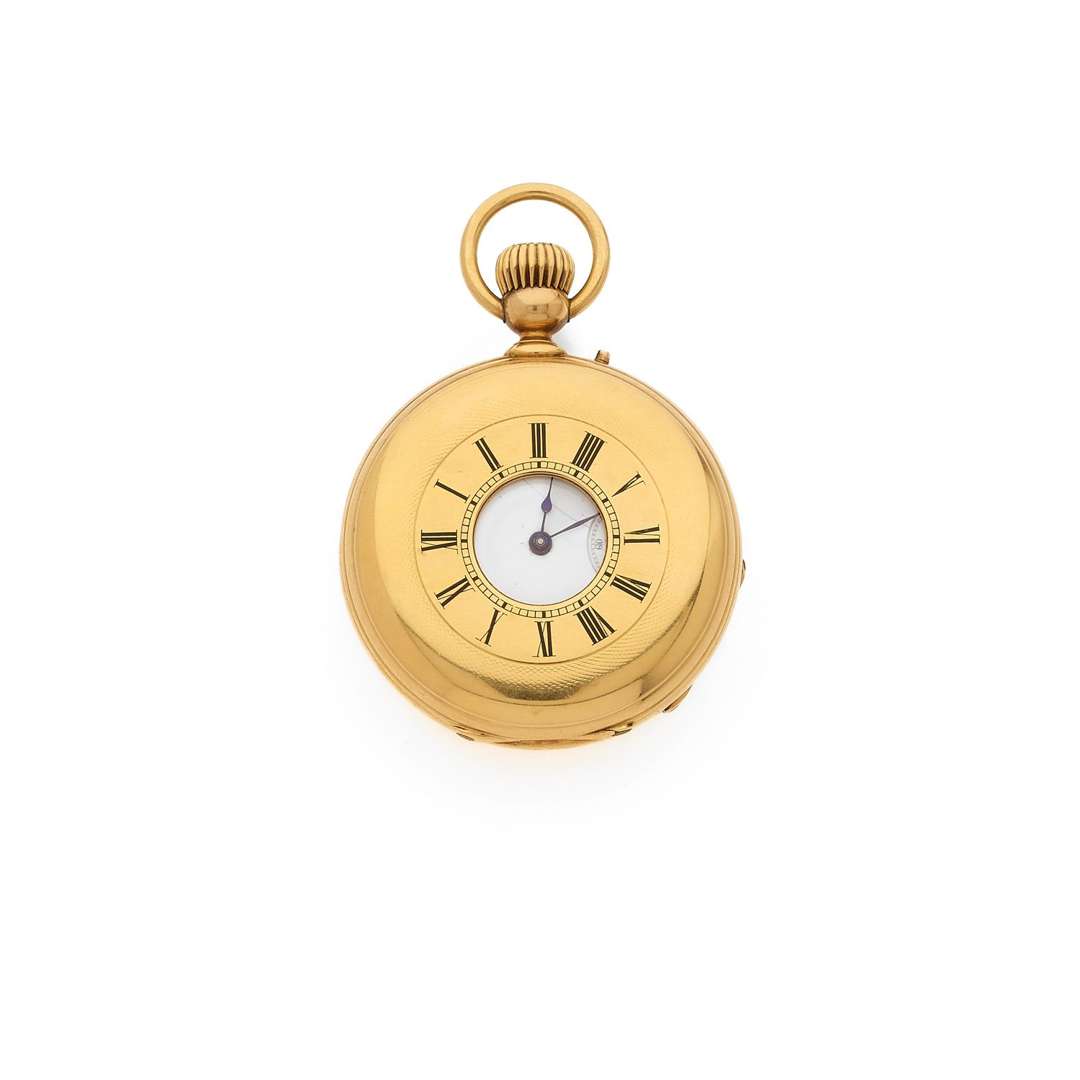 Boîtier : rond sur charnière, capot ouvert avec chiffres romains pour la lecture de l'heure et des minutes, le dos guilloché avec des initiales, cuvette en or signée « Hte BLANC Rue De La Victoire 6 Paris »