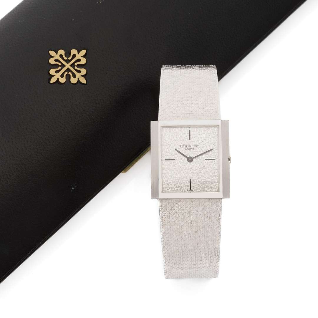 A 18k white gold manual winding wristwatch with white gold integrated bracelet signed