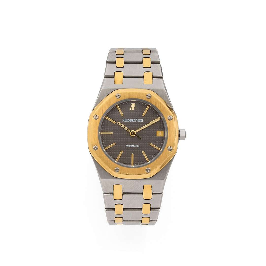 A stainless-steel and 18k yellow gold automatic wristwatch with stainless steel and yellow gold integrated bracelet signed