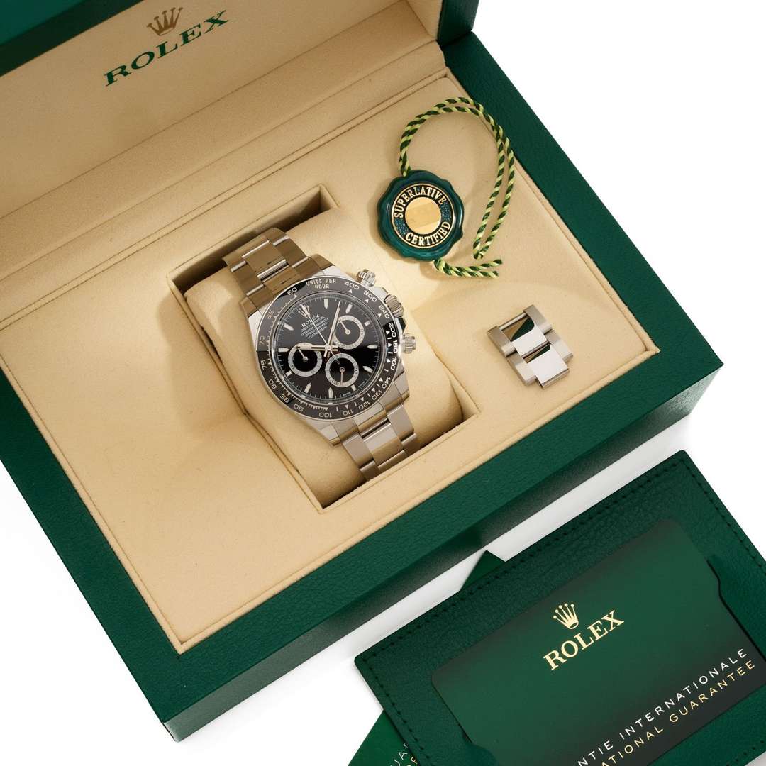Avec : écrin et sur boîte, carte de garantie en date du 10.11.2024, un tag Rolex et un livret Guarantee Manual Worldwide Service