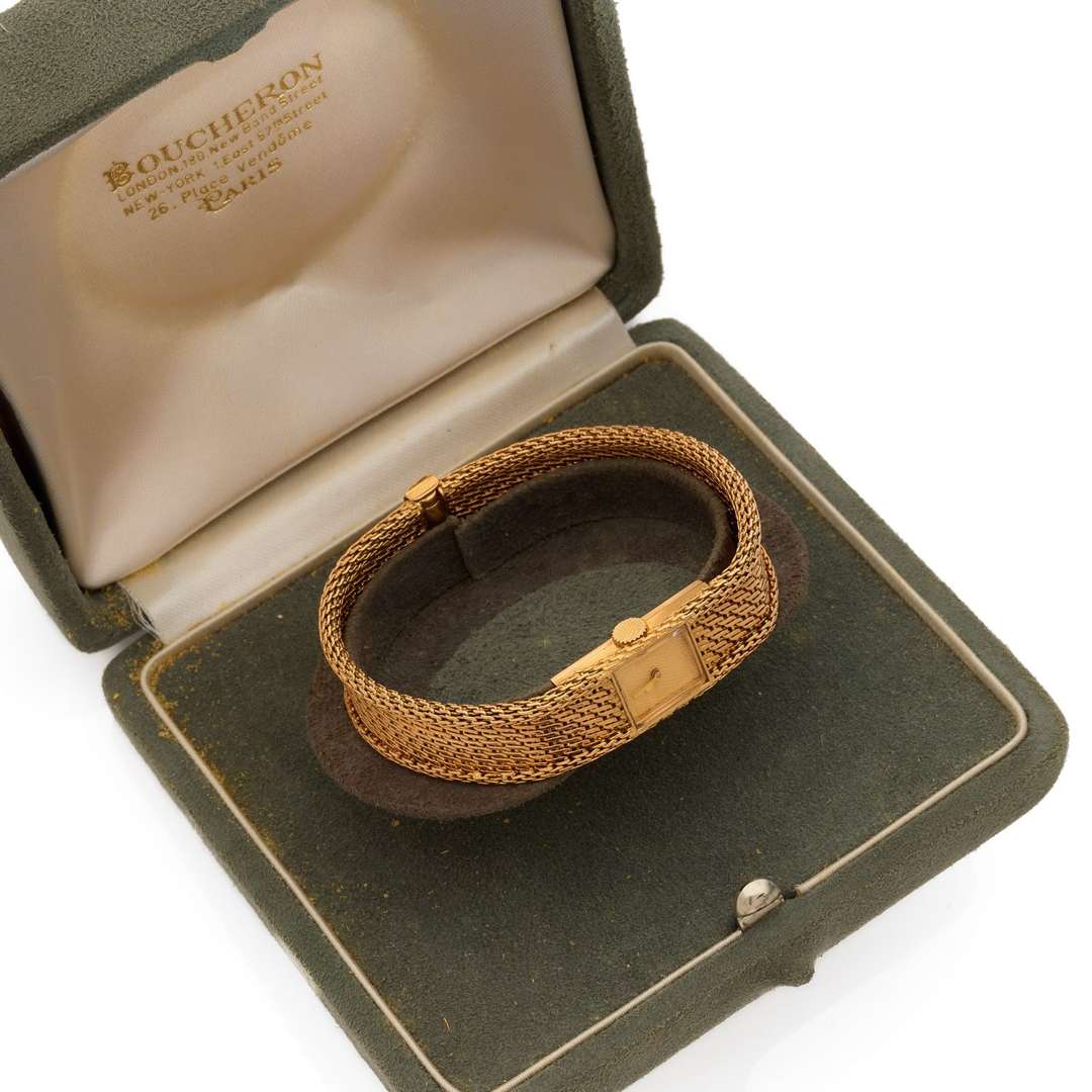 Boîtier : rectangulaire, fond fermeture à pression, numéroté et signé « Boucheron Paris »