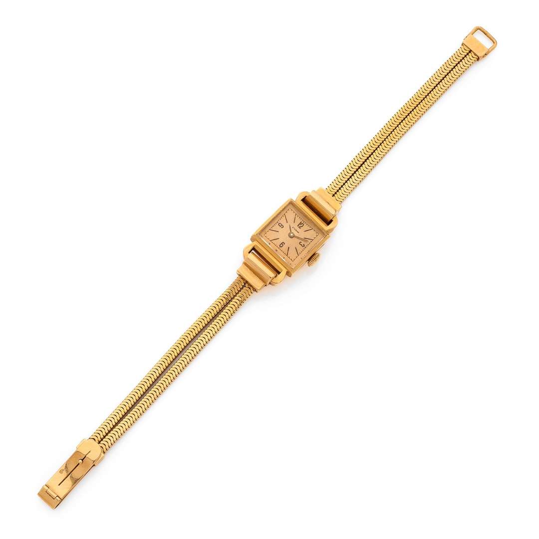 A 18k yellow gold manual winding lady's wristwatch with gold integrated bracelet