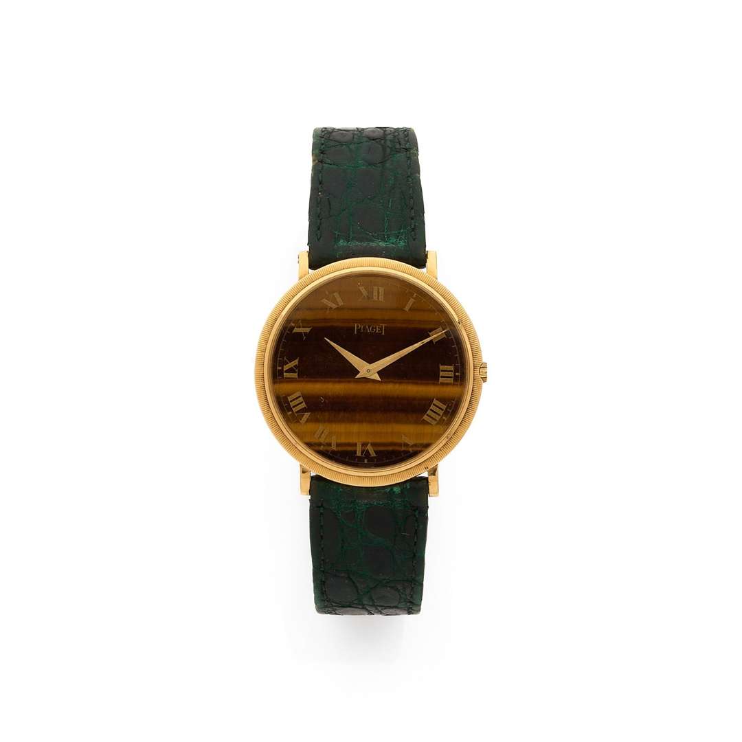 A 18k yellow gold manual winding wristwatch with tiger eye dial