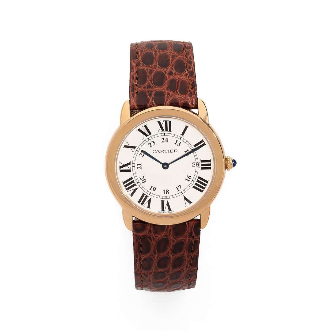 Cadran : argenté avec chiffres romains et arabes pour l'indication 24 heures, minuterie chemin de fer et date à guichet, signé