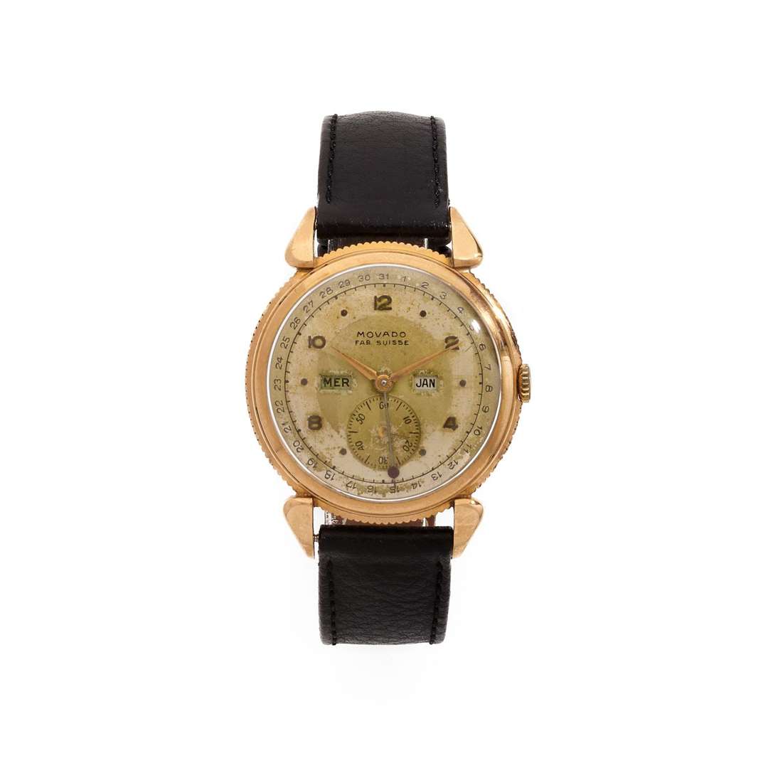 A 18k yellow gold manual winding triple calendar wristwatch