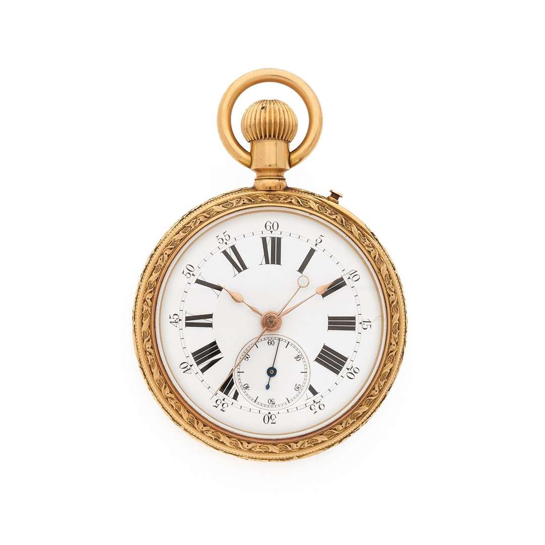 A 18k yellow gold keyless pocket watch with double face chronograph made especially for the hispanic market