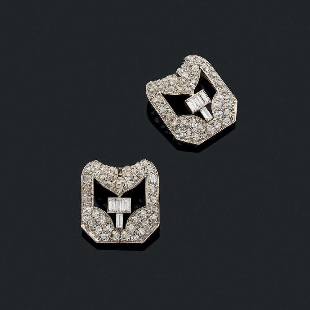 Diamond, platinum and gold clips, signed Chaumet