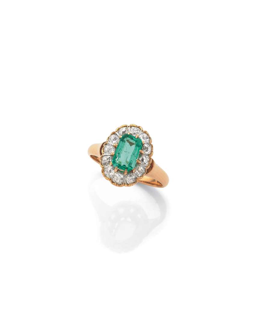 An emerald, diamond and gold ring, 19th century