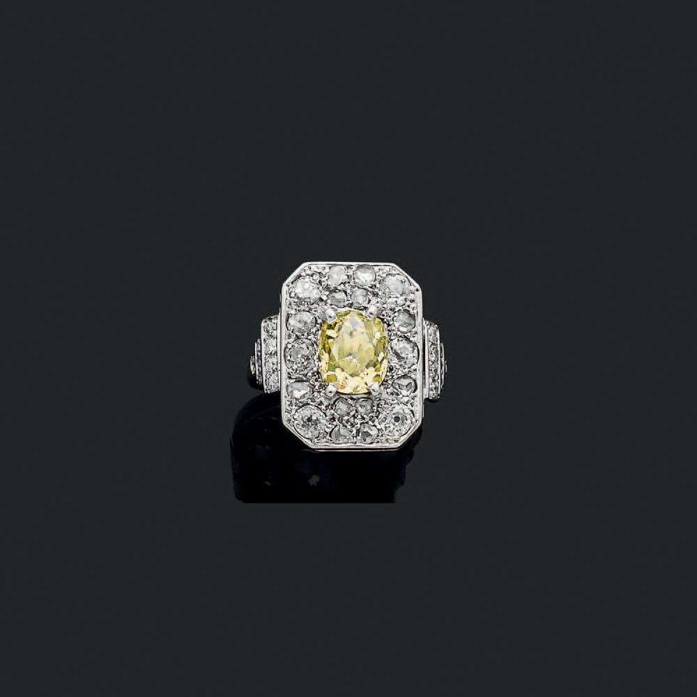 Diamant jaune coussin taille ancienne et diamants taille ancienne et taille rose