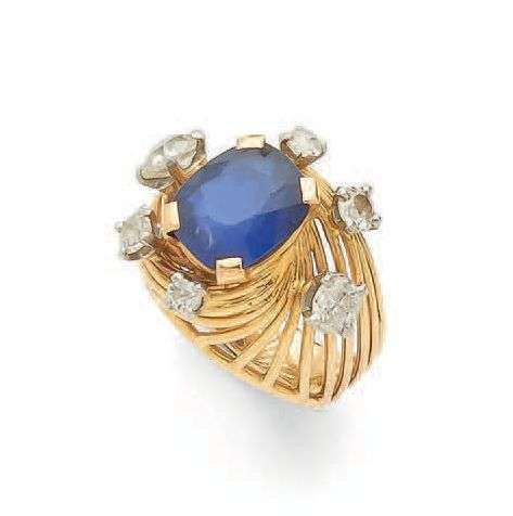 A sapphire, diamond, gold and platinum ring, report