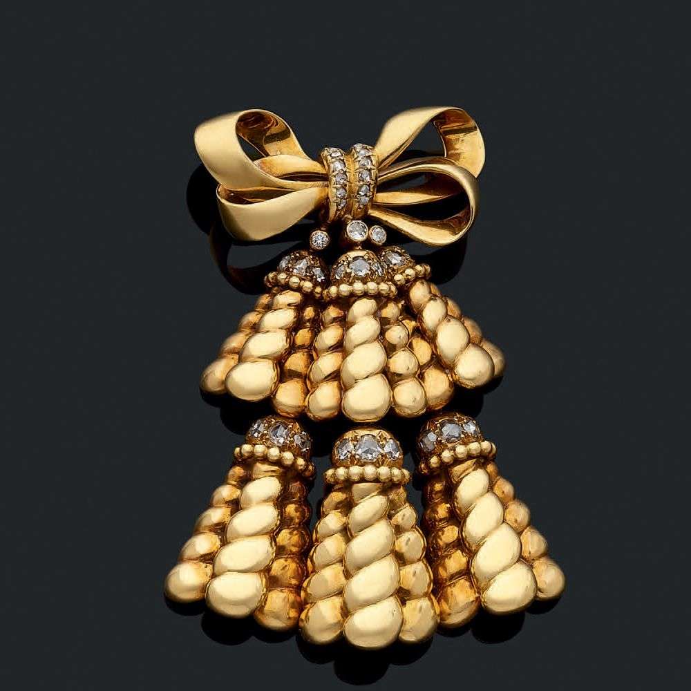 A diamond and gold brooch, signed René Boivin, certificate