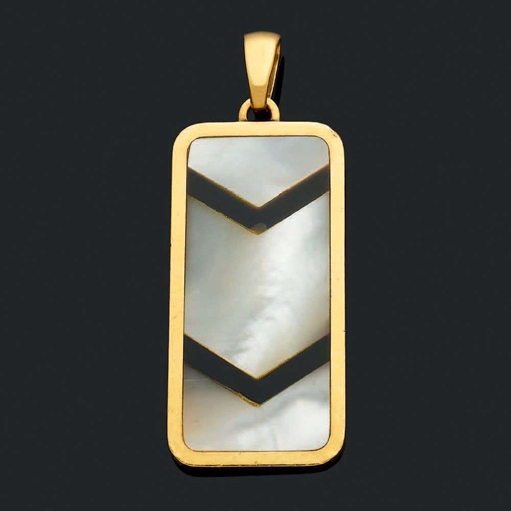 A mother of pearl, onyx and gold pendant, signed Bulgari