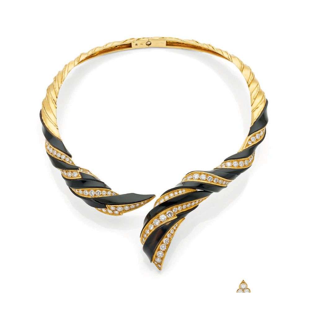 An onyx, diamond and gold necklace, circa 1970, signed Fred