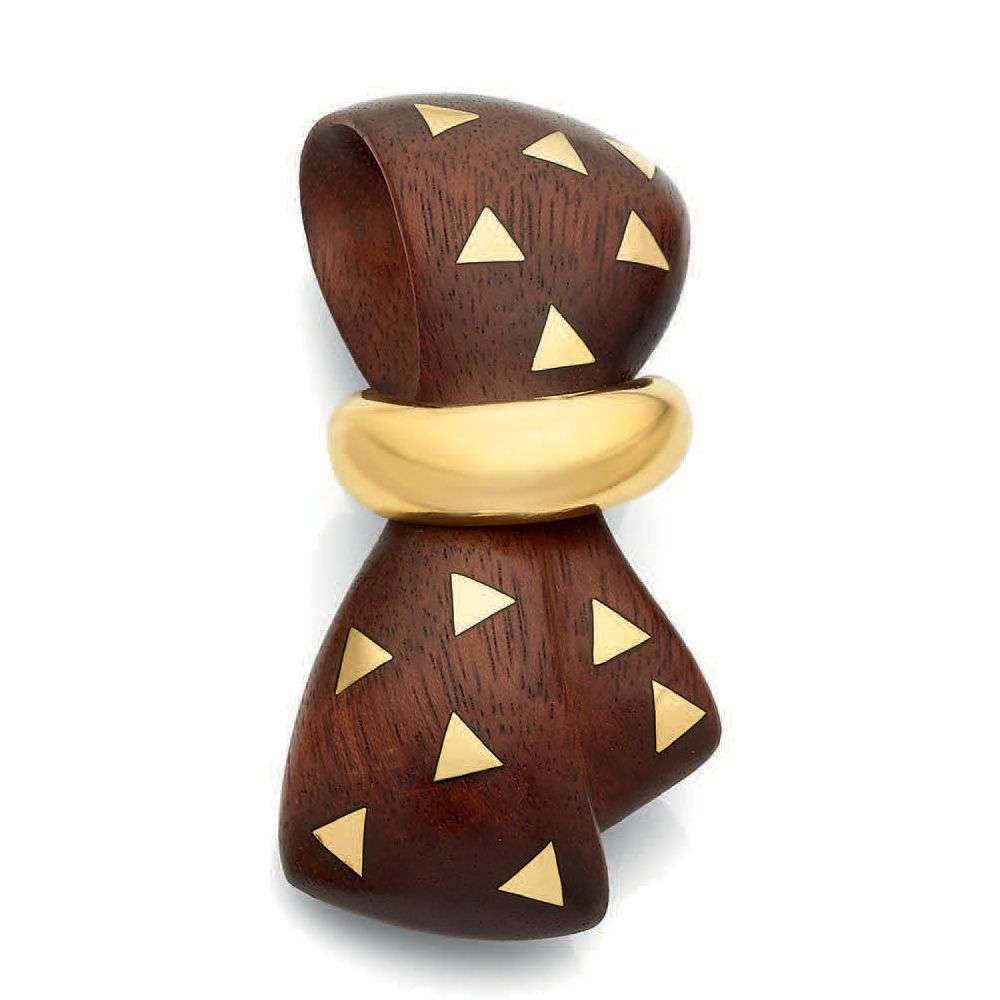 A wood and gold brooch, signed Van Cleef & Arpels