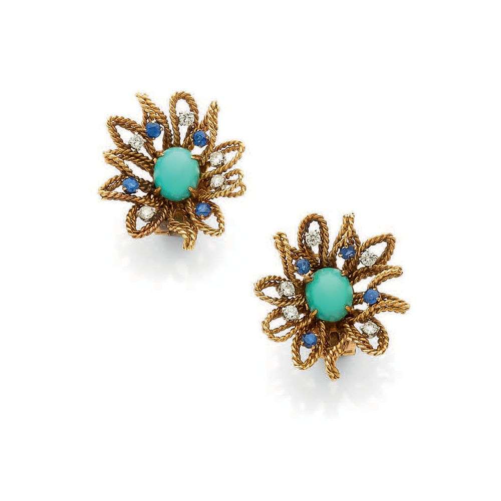 Turquoise, sapphire, diamond and gold earrings, signed Van Cleef & Arpels