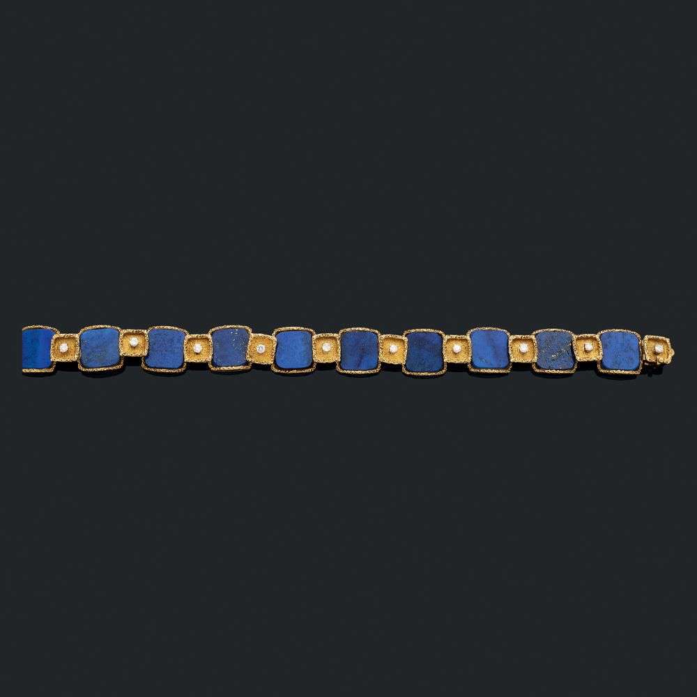 A lapis lazuli, diamond and gold bracelet, circa 1980